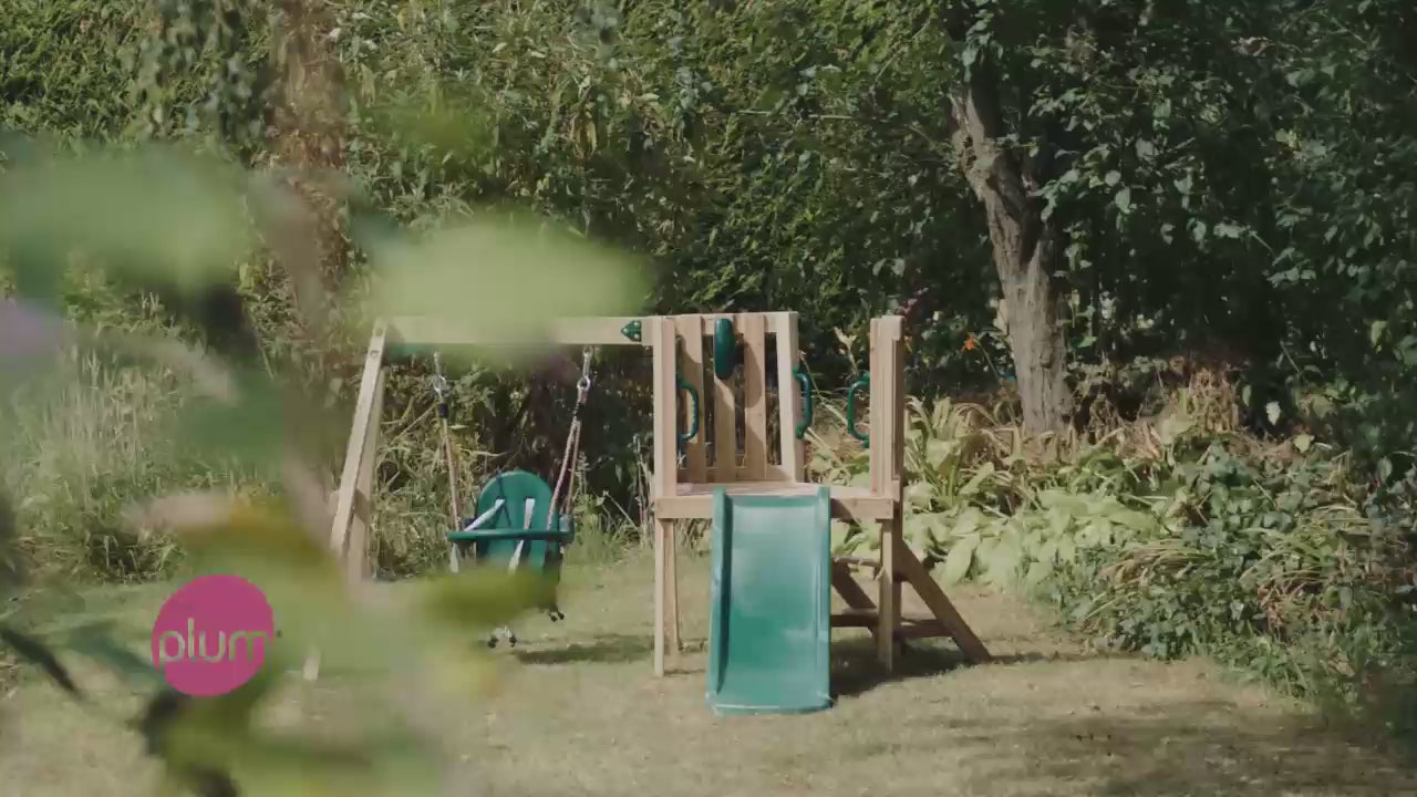 At we want play to inspire thinking, creativity, imagination, understanding, and most of all to be fun. Our philosophy is to create a world that is rich in every play possibility, where products are reassuringly safe, of great quality and are kind to the environment. Play lets kids rediscover the magical world around them and throughout their childhood experience a ‘life at play’. Little ones can draw on their chalkboard and make important calls on their very own ringing toy phone With a baby swing to the side, this wooden activity centre will encourage all kinds of fun, active outdoor play. Sturdy 4ft Green slide for your little one to whizz down and your young pioneer can climb up the wide-made steps to the enclosed platform